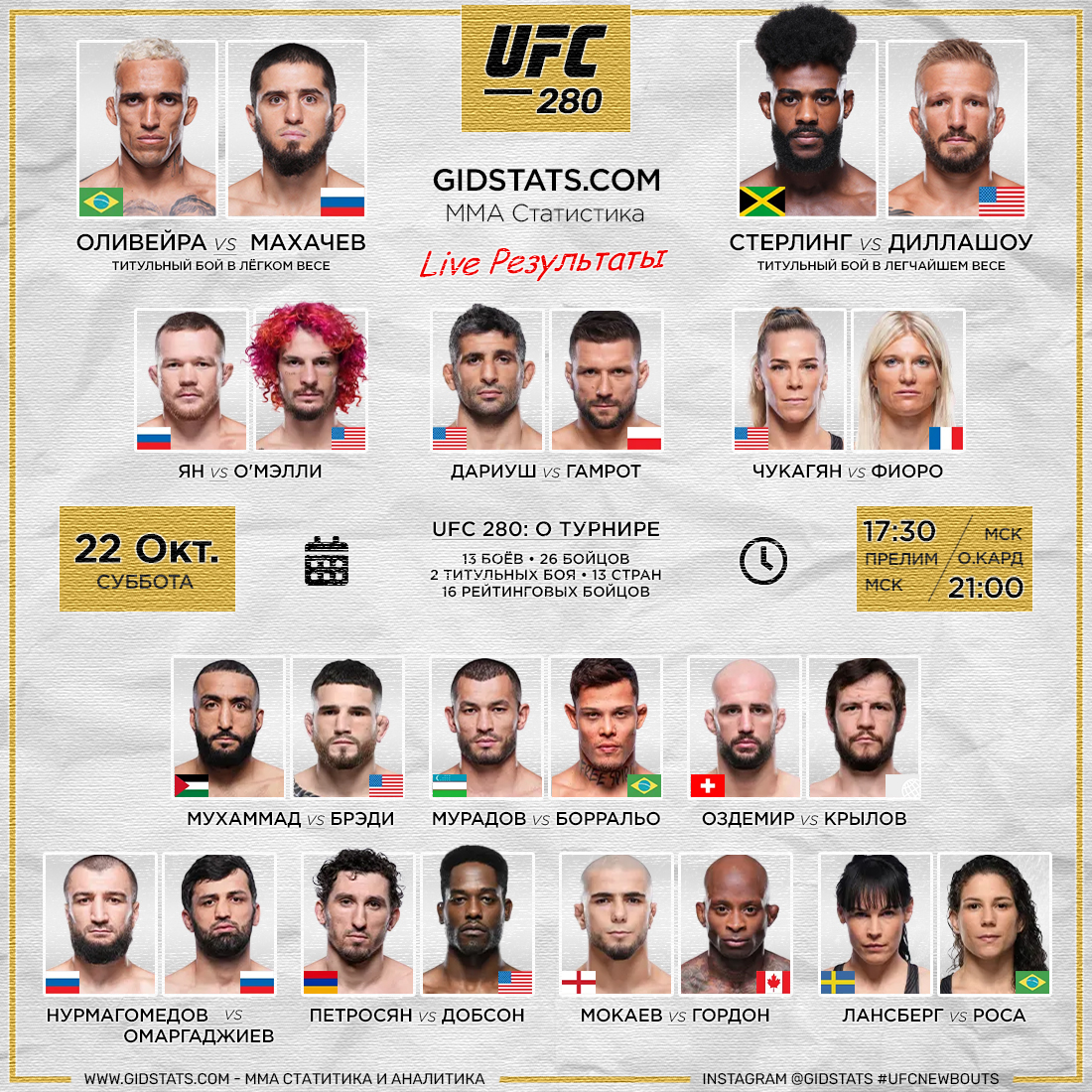 Время старта турнира 17:30 МСК. А вот сама трансляция ЮФС 280 будет на: