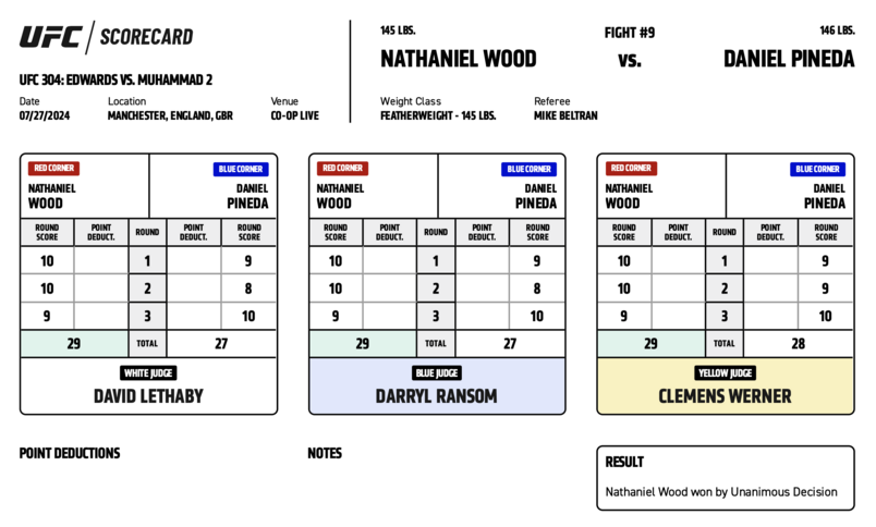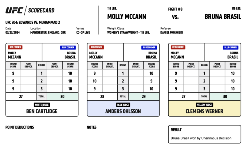 Посмотрите, как судьи оценивали каждый раунд UFC 304.