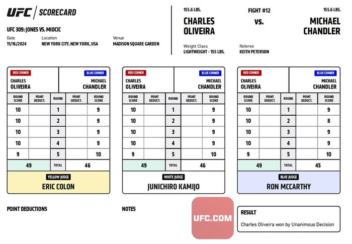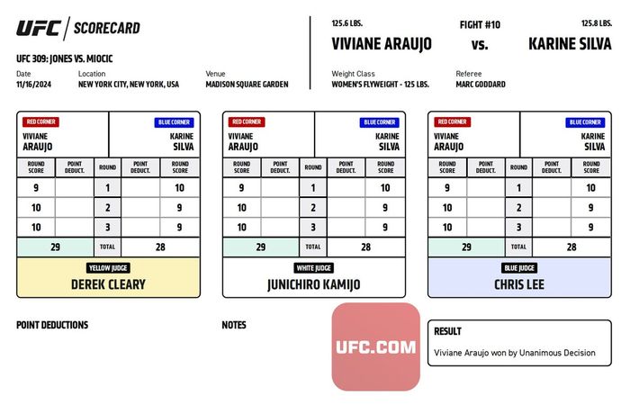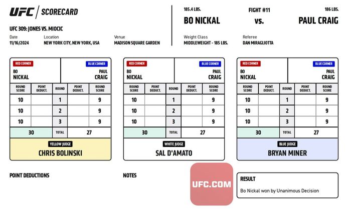 Официальные карточки судей за рингом ЮФС 309. На основе этих протоколов принимается решение о победителя боя.