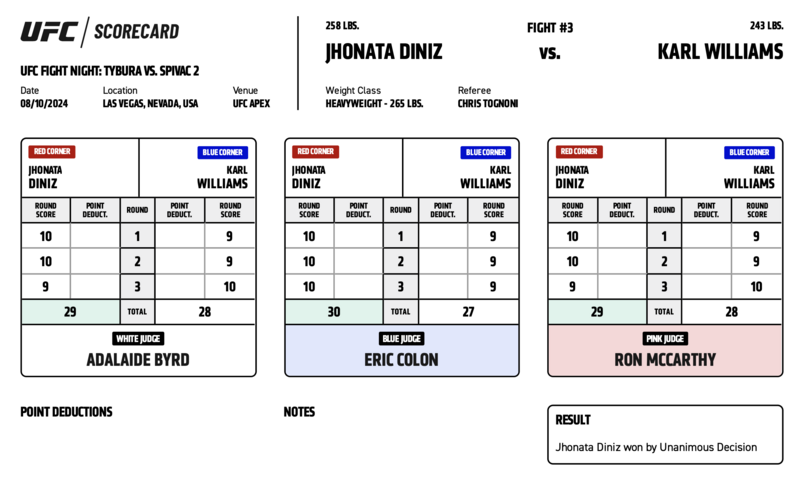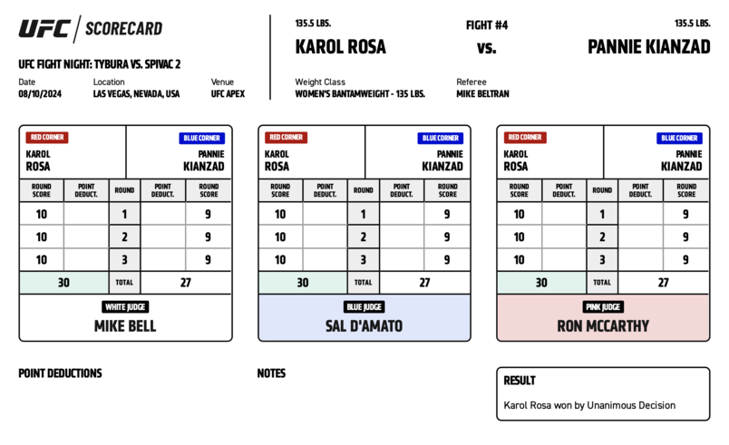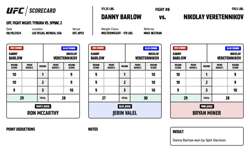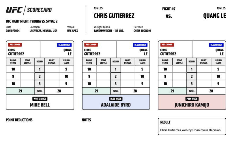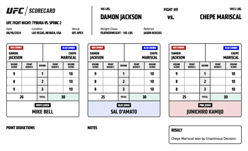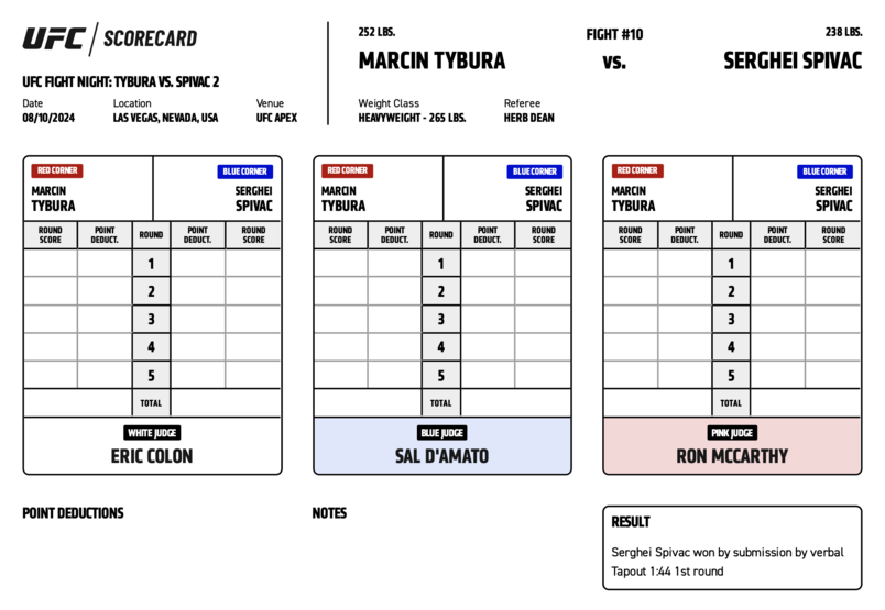 Посмотрите, как судьи оценивали каждый раунд UFC Vegas 95.
